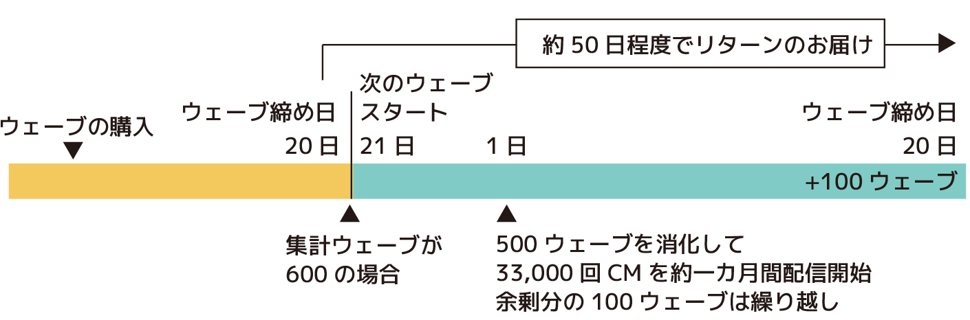 余剰分ウェーブは、次回以降に繰り越されます。次のCM配信へつながる力になります!